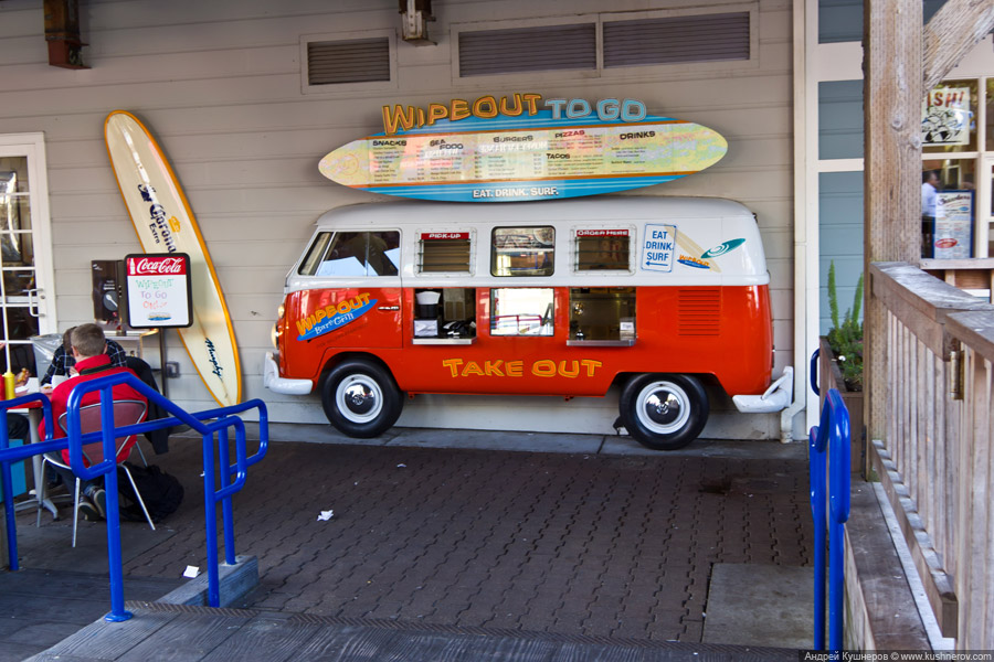 А это пирс N39, самое популярное место на побережье Сан-Франциско. Представляет собой выдающийся в море на метров сто пирс, застроенный различными домиками с ресторанчиками и развлечениями. 39-й пирс третье по популярности туристическое место во всёх Соединённых Штатах.